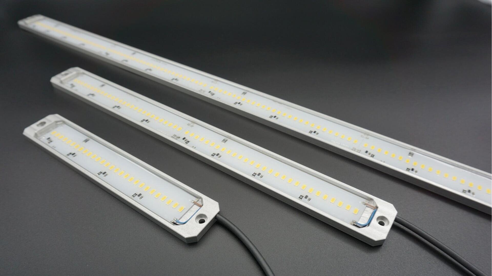 Mit den Attributen einer einfachen wie auch unauffälligen Montage und kompakten Ausmaßen mit nur 7 mm Bauhöhe sind diese LED-Lichtleisten ideal dafür prädestiniert, Lichtqualität mit bis zu 60000 h Lebensdauer in die Maschinennähe zu bringen. Wie die Schutzklassen zeigen üben Vibrationen und Feuchtigkeit keinen Einfluss auf die längenvariablen, mit PUR vergossenen Leuchtkörper aus. Die zwei Modelle Regular und X-Large mit jeweils verschiedenen Längen gestalten die Anpassung an die Räumlichkeiten flexibel. Weitere Kennwerte sind eine Farbtemperatur von 5700 K mit je nach Länge differierenden Lampenlichtstromwerten bis maximal lm 8400.