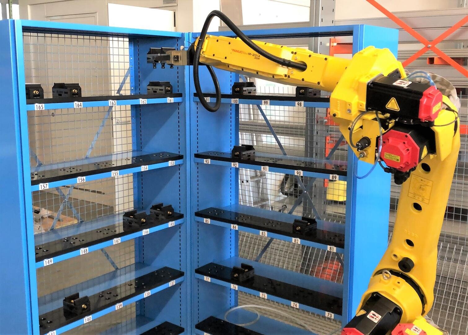 Die RoboRack Automatisierungslösung ermöglicht die mannlose Beladung von Paletten in die Werkzeugmaschine sowie die Entladung zurück in das Rack. Dies generiert einen höchstmöglichen Ausnutzungsgrad Ihres Bearbeitungscenters. Die flexible Anordnungsmöglichkeit der Racks erlaubt viele Konfigurationen.