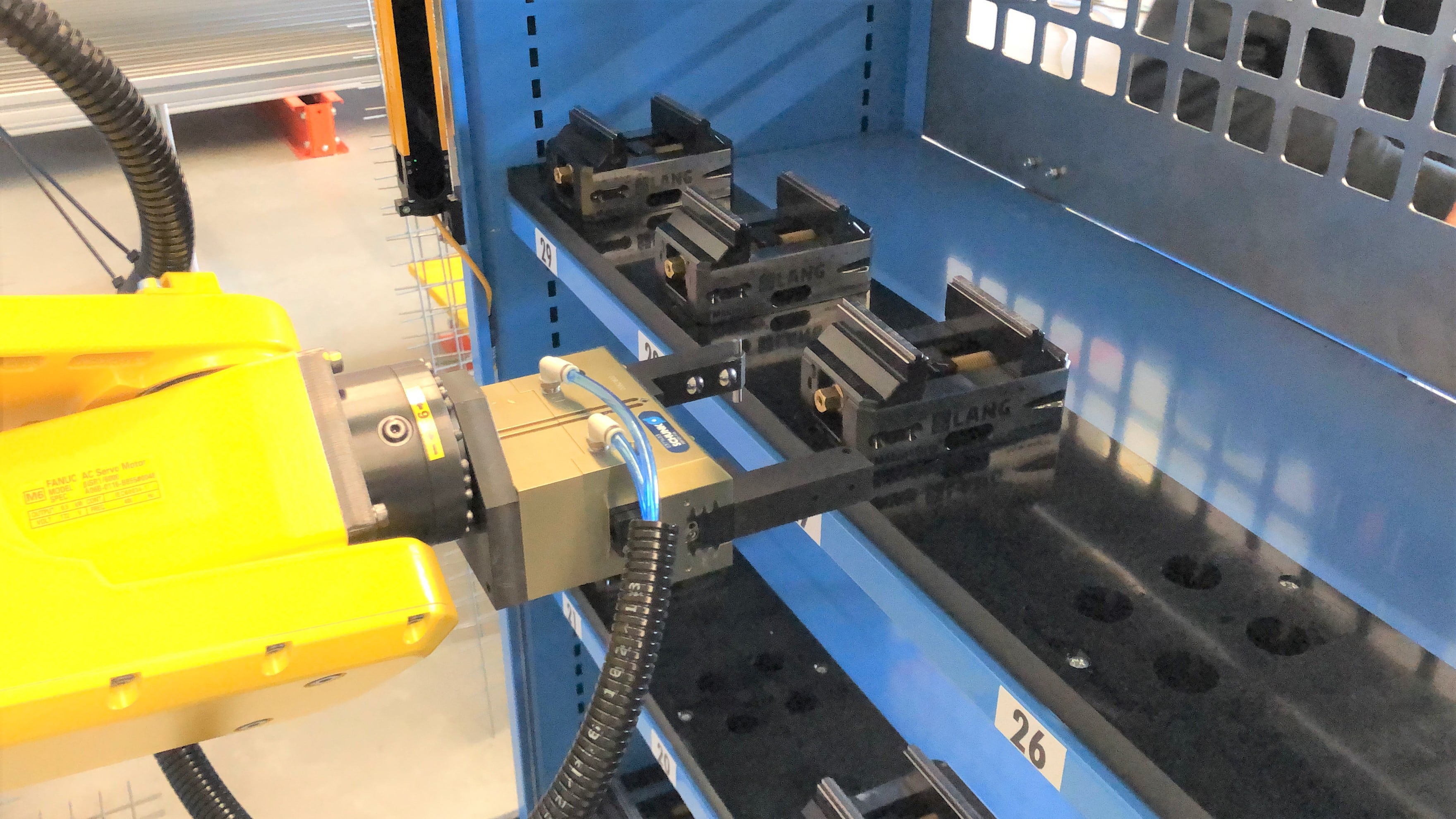 Die vielseitige Automatisierung auch für schwerere Teile: Der Paletten- resp. Teilespeicher ist zugleich Umhausung. Robo-Rack eignet sich auch bei kleinen Losgrössen.